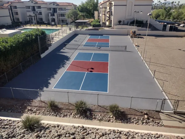 Nếu sân dùng cho thi đấu chính thức hoặc các giải phong trào thường xuyên, yêu cầu về độ dày lớp sơn, số lớp đệm đàn hồi và độ chống trượt sẽ cao hơn so với sân vui chơi, sân tại khu dân cư. Vì vậy, bảng giá sơn picklaball cho sân thi đấu thường nằm ở nhóm gói tiêu chuẩn hoặc gói cao cấp, với định mức vật tư trên mỗi m2 lớn hơn.
